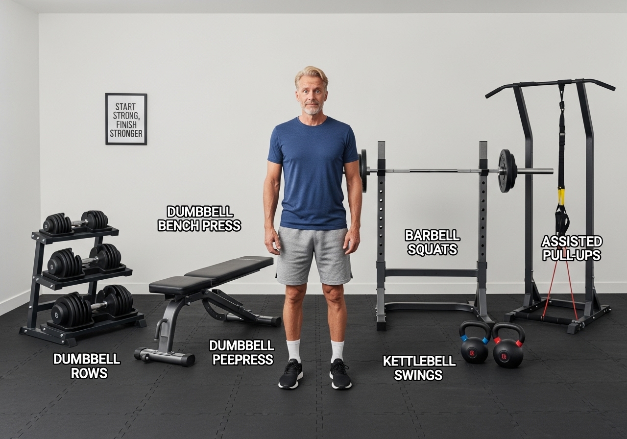 I want to start lifting weights to build strength but the gym is intimidating. What are some basic lifts I should focus on as a complete beginner?